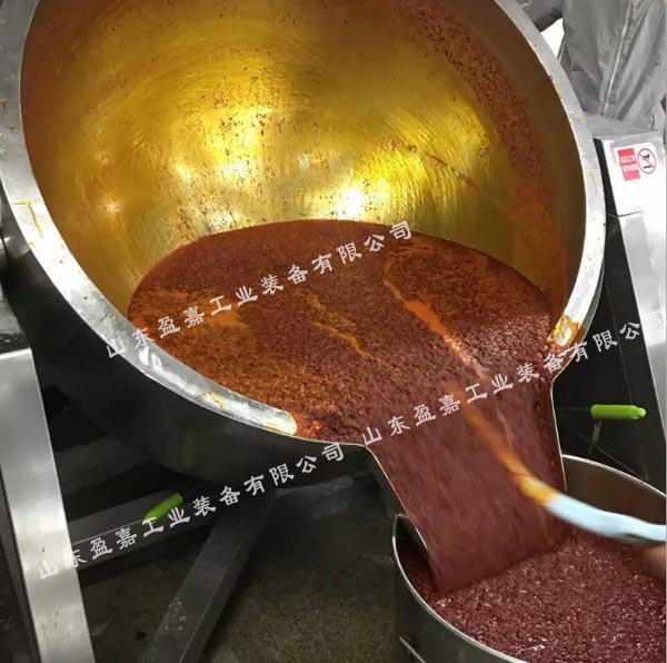 重慶火鍋底料行星攪拌炒鍋,采用360度攪拌方式 火鍋底料行星攪拌炒鍋具有造型美觀、設(shè)計(jì)合理、結(jié)構(gòu)緊湊、安裝方便、操作簡(jiǎn)單、便于維修。攪拌方式采用特殊的傾斜式傳動(dòng),使用的行星式攪拌器與鍋體充分接觸。攪拌系統(tǒng)采用自轉(zhuǎn)公轉(zhuǎn)相結(jié)合的方式,其傳動(dòng)比為不整數(shù)傳動(dòng)比,保證鍋內(nèi)無(wú)任何攪拌盲點(diǎn)。使用先進(jìn)的傳動(dòng)與密封結(jié)構(gòu),使傳動(dòng)部分與鍋內(nèi)潔凈、衛(wèi)生。該系列設(shè)備自動(dòng)/液壓型是利用液壓推力使攪拌臂翻轉(zhuǎn),免拆裝攪拌器,再利用液壓推力傾翻鍋體,易于進(jìn)出原料節(jié)省人力,采用無(wú)級(jí)變頻調(diào)速器能將高粘度產(chǎn)物混合均勻加熱提高熱量,具有易于操作,工作效率高,耗能低,使用壽命長(zhǎng),結(jié)構(gòu)緊湊,維修方便等特點(diǎn),是性能優(yōu)良的攪拌機(jī)。