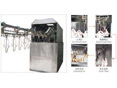 設(shè)有變頻調(diào)速、噴糖稀槽、瀝糖稀槽、自動(dòng)控溫、自動(dòng)排油煙等功能,保證了燒雞炸制時(shí)間和溫度的一致,能有效提高產(chǎn)量,降低了工人的勞動(dòng)強(qiáng)度。