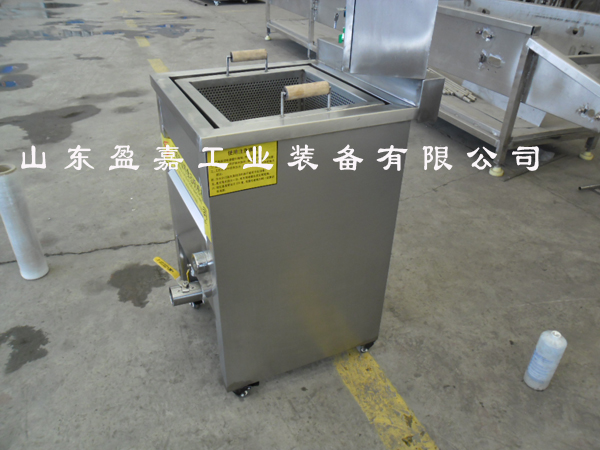 手動(dòng)出料單炸框油水混合型油條油炸機(jī)采用油水混合油炸工藝,油炸鍋分為油區(qū)和水區(qū),并實(shí)行自動(dòng)控溫,油區(qū)溫度在0-300攝氏度之間任意調(diào)整,水區(qū)溫控控制在25攝氏度,油炸過(guò)程中產(chǎn)生的殘?jiān)鼤?huì)經(jīng)過(guò)油炸機(jī)一個(gè)特定的端口滑落到水區(qū)中,水區(qū)底部設(shè)有專門(mén)的排污閥,通過(guò)排污閥可將殘?jiān)S時(shí)排出油炸機(jī)的外部。油水混合工藝實(shí)現(xiàn)了油炸過(guò)程中的無(wú)殘?jiān)鼰o(wú)廢油的優(yōu)勢(shì),保證了炸油的質(zhì)量,延長(zhǎng)了炸油的使用時(shí)間。